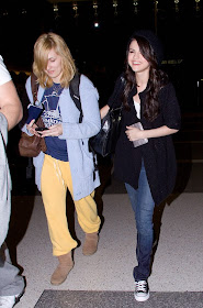 Selena Gomez camaina del brazo con una amiaga cuando llega al aeropuerto de LAX en Los Ángeles después de ganar como actriz favorita de TV en los Kids Choice Awards 2010, la noche del sábado (27 de marzo).